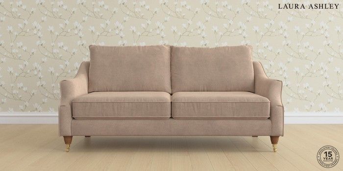 6.12.1 Buy Beverley by Laura Ashley 3 Seater Sofa Ailsworth Mink Natural Low Brass Castor - Teak from the Next UK online shop Click here to use our accessible website