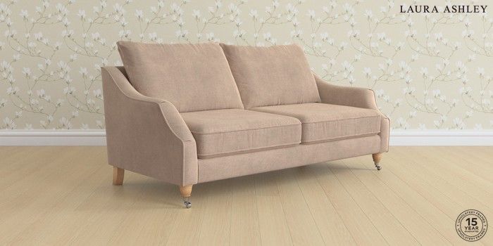 7.2.6 Buy Beverley by Laura Ashley 3 Seater Sofa Ailsworth Mink Natural Low Chrome Castor - Light Oak from the Next UK online shop Click here to use our accessible website