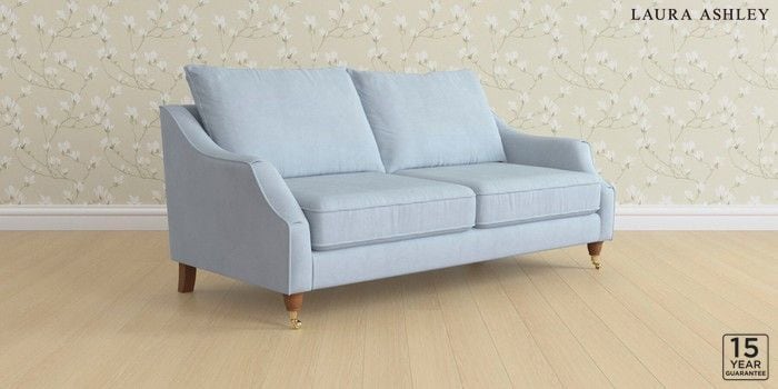 6.12.13 Buy Beverley by Laura Ashley 3 Seater Sofa Ailsworth Newport Blue Low Brass Castor - Teak from the Next UK online shop Click here to use our accessible website