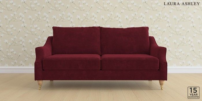 6.12.13 Buy Beverley by Laura Ashley 3 Seater Sofa Alwyn Velvet Burgundy Red Low Brass Castor - Light Oak from the Next UK online shop Click here to use our accessible website