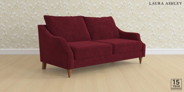 7.3.1 Buy Beverley by Laura Ashley 3 Seater Sofa Alwyn Velvet Burgundy Red Low Turned - Teak from the Next UK online shop Click here to use our accessible website