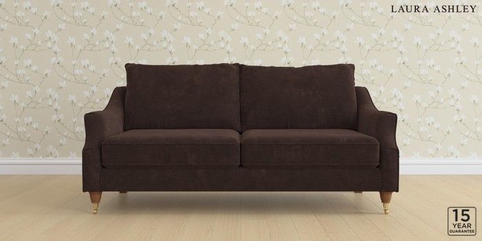 6.12.1 Buy Beverley by Laura Ashley 3 Seater Sofa Alwyn Velvet Chocolate Brown Low Brass Castor - Teak from the Next UK online shop Click here to use our accessible website