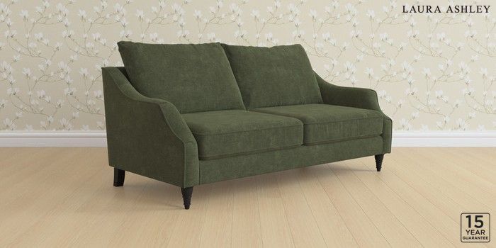 7.3.1 Buy Beverley by Laura Ashley 3 Seater Sofa Alwyn Velvet Ivy Green Low Turned - Black from the Next UK online shop Click here to use our accessible website