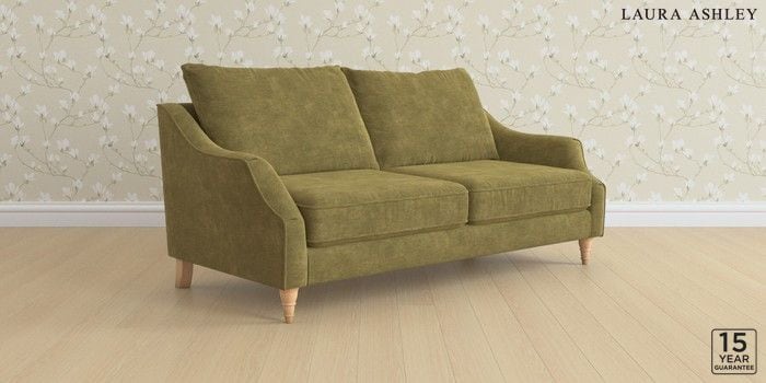 7.3.1 Buy Beverley by Laura Ashley 3 Seater Sofa Alwyn Velvet Olive Green Low Turned - Light Oak from the Next UK online shop Click here to use our accessible website