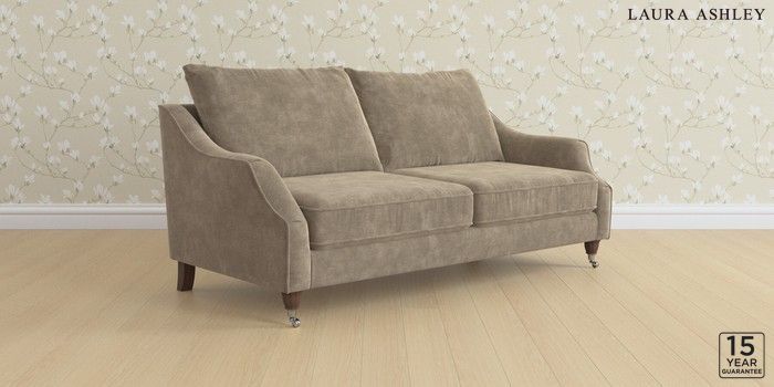7.3.1 Buy Beverley by Laura Ashley 3 Seater Sofa Alwyn Velvet Truffle Natural Low Chrome Castor - Chestnut from the Next UK online shop Click here to use our accessible website