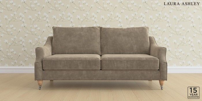 6.12.1 Buy Beverley by Laura Ashley 3 Seater Sofa Alwyn Velvet Truffle Natural Low Chrome Castor - Light Oak from the Next UK online shop Click here to use our accessible website