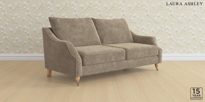 7.3.1 Buy Beverley by Laura Ashley 3 Seater Sofa Alwyn Velvet Truffle Natural Low Chrome Castor - Light Oak from the Next UK online shop Click here to use our accessible website