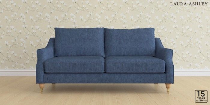 6.12.1 Buy Beverley by Laura Ashley 3 Seater Sofa Bainton Midnight Navy Low Brass Castor - Light Oak from the Next UK online shop Click here to use our accessible website