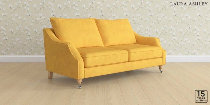 7.3.1 Buy Beverley by Laura Ashley 3 Seater Sofa Bainton Ochre Yellow Low Chrome Castor - Light Oak from the Next UK online shop Click here to use our accessible website