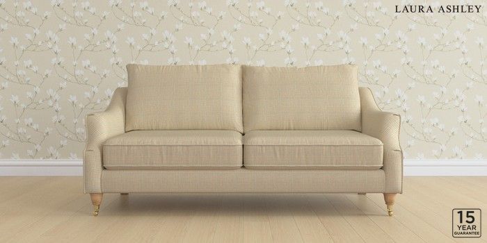 6.12.1 Buy Beverley by Laura Ashley 3 Seater Sofa Birchgrove Check Oatmeal Natural Low Brass Castor - Light Oak from the Next UK online shop Click here to use our accessible website