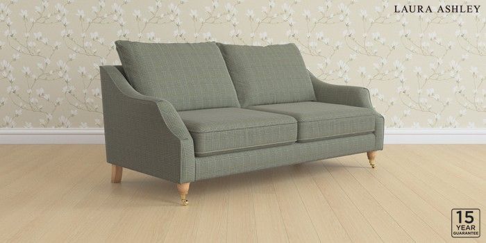 7.3.1 Buy Beverley by Laura Ashley 3 Seater Sofa Birchgrove Check Olive Green Low Brass Castor - Light Oak from the Next UK online shop Click here to use our accessible website