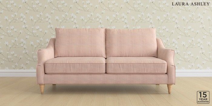 6.12.1 Buy Beverley by Laura Ashley 3 Seater Sofa Edwin Chenille Blush Pink Low Turned - Light Oak from the Next UK online shop Click here to use our accessible website