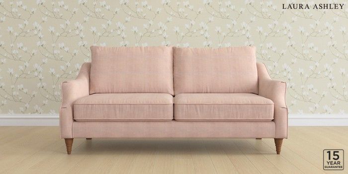 6.12.1 Buy Beverley by Laura Ashley 3 Seater Sofa Edwin Chenille Blush Pink Low Turned - Teak from the Next UK online shop Click here to use our accessible website