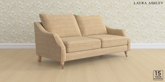 7.3.1 Buy Beverley by Laura Ashley 3 Seater Sofa Edwin Chenille Gold Natural Low Chrome Castor - Light Oak from the Next UK online shop Click here to use our accessible website