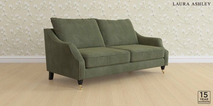 6.12.1 Buy Beverley by Laura Ashley 3 Seater Sofa Edwin Chenille Hedgerow Green Low Brass Castor - Black from the Next UK online shop Click here to use our accessible website