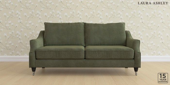 6.12.1 Buy Beverley by Laura Ashley 3 Seater Sofa Edwin Chenille Hedgerow Green Low Chrome Castor - Black from the Next UK online shop Click here to use our accessible website