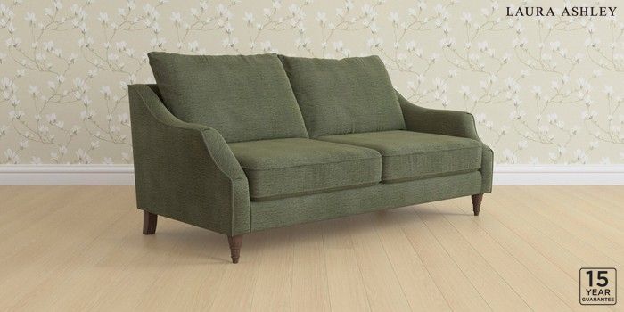6.12.1 Buy Beverley by Laura Ashley 3 Seater Sofa Edwin Chenille Hedgerow Green Low Turned - Chestnut from the Next UK online shop Click here to use our accessible website