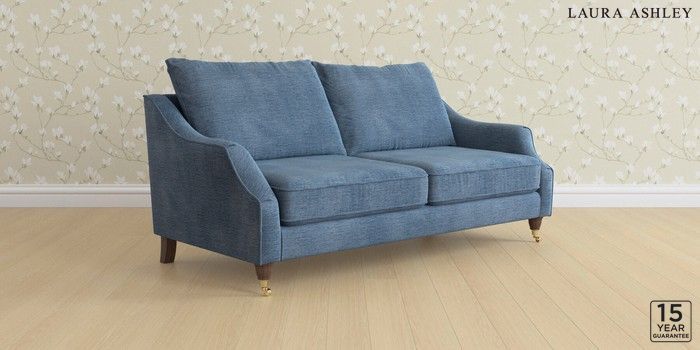 6.12.13 Buy Beverley by Laura Ashley 3 Seater Sofa Edwin Chenille Seaspray Blue Low Brass Castor - Chestnut from the Next UK online shop Click here to use our accessible website