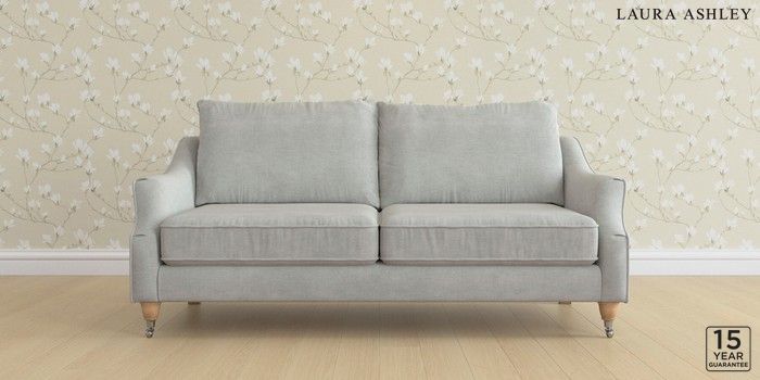 6.12.1 Buy Beverley by Laura Ashley 3 Seater Sofa Edwin Chenille Silver Grey Low Chrome Castor - Light Oak from the Next UK online shop Click here to use our accessible website
