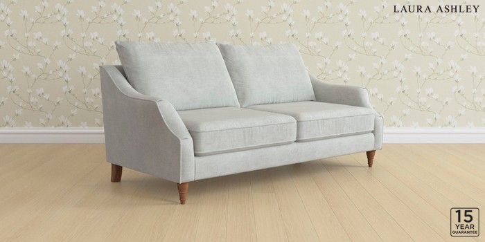 6.12.1 Buy Beverley by Laura Ashley 3 Seater Sofa Edwin Chenille Silver Grey Low Turned - Teak from the Next UK online shop Click here to use our accessible website