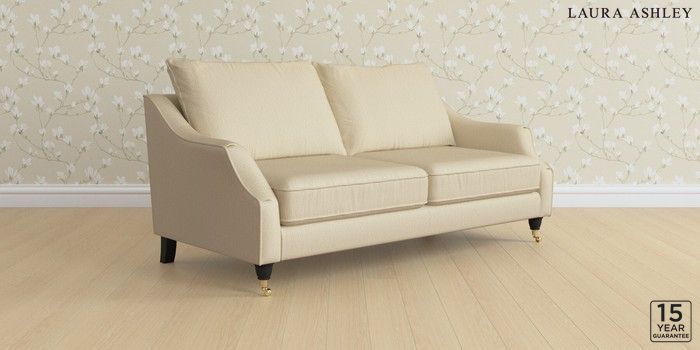 6.12.1 Buy Beverley by Laura Ashley 3 Seater Sofa Edwin Herringbone Natural Low Brass Castor - Black from the Next UK online shop Click here to use our accessible website