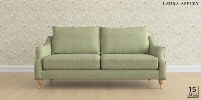6.12.1 Buy Beverley by Laura Ashley 3 Seater Sofa Kinsham Hedgerow Green Low Brass Castor - Light Oak from the Next UK online shop Click here to use our accessible website