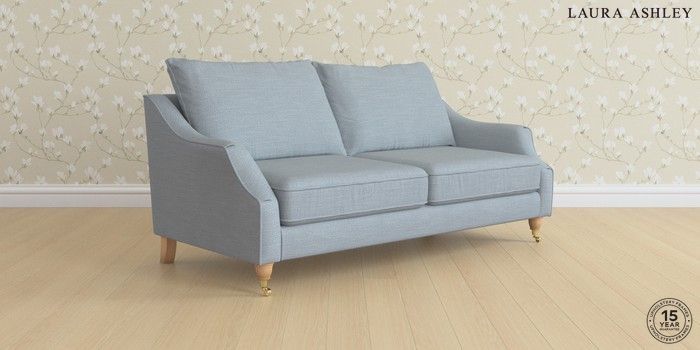 7.2.6 Buy Beverley by Laura Ashley 3 Seater Sofa Kinsham Seaspray Blue Low Brass Castor - Light Oak from the Next UK online shop Click here to use our accessible website