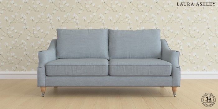 6.12.1 Buy Beverley by Laura Ashley 3 Seater Sofa Kinsham Seaspray Blue Low Chrome Castor - Light Oak from the Next UK online shop Click here to use our accessible website