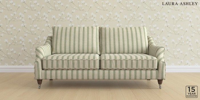 6.12.1 Buy Beverley by Laura Ashley 3 Seater Sofa Kinsham Stripe Hedgerow Green Low Chrome Castor - Chestnut from the Next UK online shop Click here to use our accessible website