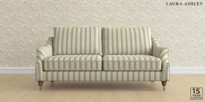 6.12.1 Buy Beverley by Laura Ashley 3 Seater Sofa Kinsham Stripe Hedgerow Green Low Chrome Castor - Teak from the Next UK online shop Click here to use our accessible website