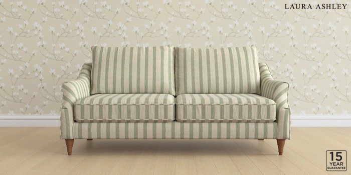 6.12.1 Buy Beverley by Laura Ashley 3 Seater Sofa Kinsham Stripe Hedgerow Green Low Turned - Teak from the Next UK online shop Click here to use our accessible website