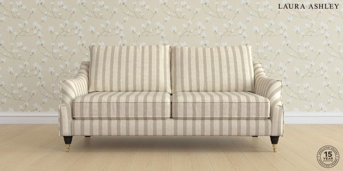 6.12.1 Buy Beverley by Laura Ashley 3 Seater Sofa Kinsham Stripe Natural Low Brass Castor - Black from the Next UK online shop Click here to use our accessible website