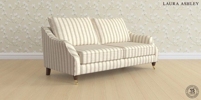 7.2.6 Buy Beverley by Laura Ashley 3 Seater Sofa Kinsham Stripe Natural Low Brass Castor - Chestnut from the Next UK online shop Click here to use our accessible website