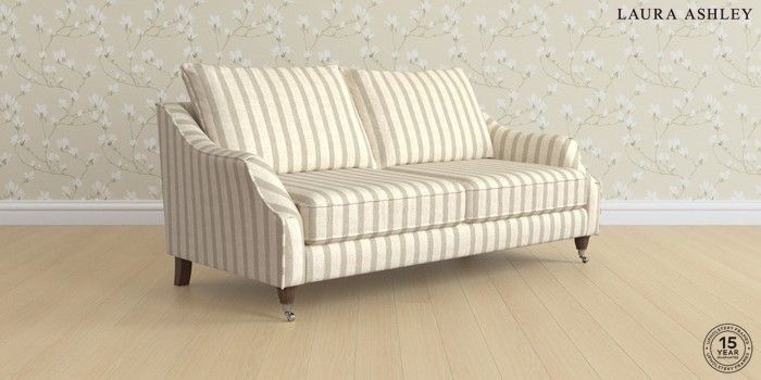 7.2.6 Buy Beverley by Laura Ashley 3 Seater Sofa Kinsham Stripe Natural Low Chrome Castor - Chestnut from the Next UK online shop Click here to use our accessible website