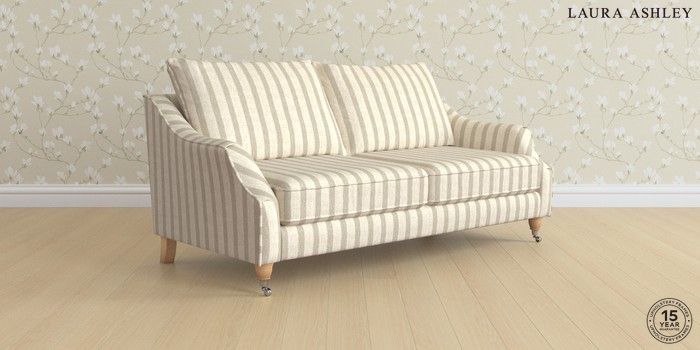 7.2.6 Buy Beverley by Laura Ashley 3 Seater Sofa Kinsham Stripe Natural Low Chrome Castor - Light Oak from the Next UK online shop Click here to use our accessible website