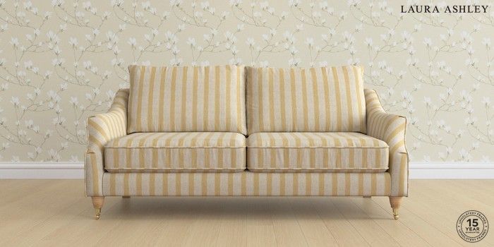 7.0.3 Buy Beverley by Laura Ashley 3 Seater Sofa Kinsham Stripe Ochre Yellow Low Brass Castor - Light Oak from the Next UK online shop Click here to use our accessible website