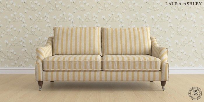 Sit back and relax in style with the elegant Laura Ashley Beverley sofa. From its flared set back sofa arm design to the pillow edged back cushions and turned polished feet, the Beverley sofa makes an excellent addition to any living space. Foam seat cushions with soft foam toppers offer comfort, support, and ease of maintenance. The feet are available with or without brass or chrome castors for a personalised finish.