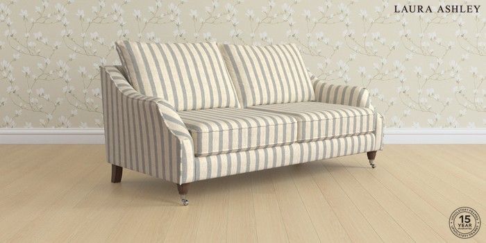 7.2.6 Buy Beverley by Laura Ashley 3 Seater Sofa Kinsham Stripe Seaspray Blue Low Chrome Castor - Chestnut from the Next UK online shop Click here to use our accessible website