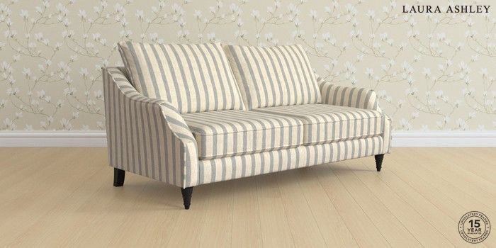 Sit back and relax in style with the elegant Laura Ashley Beverley sofa. From its flared set back sofa arm design to the pillow edged back cushions and turned polished feet, the Beverley sofa makes an excellent addition to any living space. Foam seat cushions with soft foam toppers offer comfort, support, and ease of maintenance. The feet are available with or without brass or chrome castors for a personalised finish.