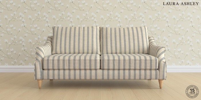 6.12.1 Buy Beverley by Laura Ashley 3 Seater Sofa Kinsham Stripe Seaspray Blue Low Turned - Light Oak from the Next UK online shop Click here to use our accessible website