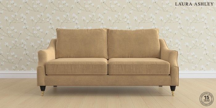 6.12.1 Buy Beverley by Laura Ashley 3 Seater Sofa Lundar Chenille Caramel Natural Low Brass Castor - Black from the Next UK online shop Click here to use our accessible website