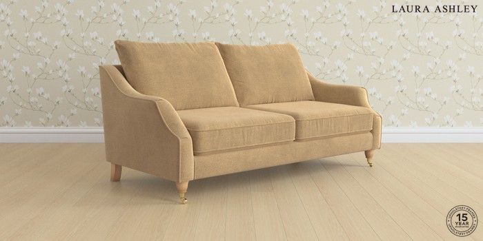 7.2.10 Buy Beverley by Laura Ashley 3 Seater Sofa Lundar Chenille Caramel Natural Low Brass Castor - Light Oak from the Next UK online shop Click here to use our accessible website