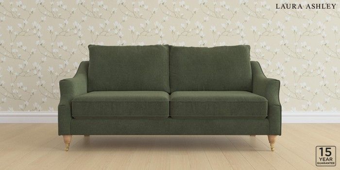 6.12.1 Buy Beverley by Laura Ashley 3 Seater Sofa Lundar Chenille Ivy Green Low Brass Castor - Light Oak from the Next UK online shop Click here to use our accessible website
