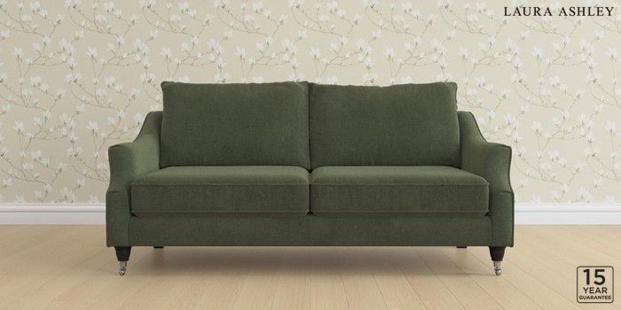 6.12.1 Buy Beverley by Laura Ashley 3 Seater Sofa Lundar Chenille Ivy Green Low Chrome Castor - Black from the Next UK online shop Click here to use our accessible website