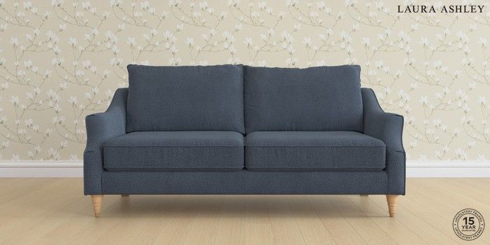 6.12.1 Buy Beverley by Laura Ashley 3 Seater Sofa Lundar Chenille Navy Blue Low Turned - Light Oak from the Next UK online shop Click here to use our accessible website