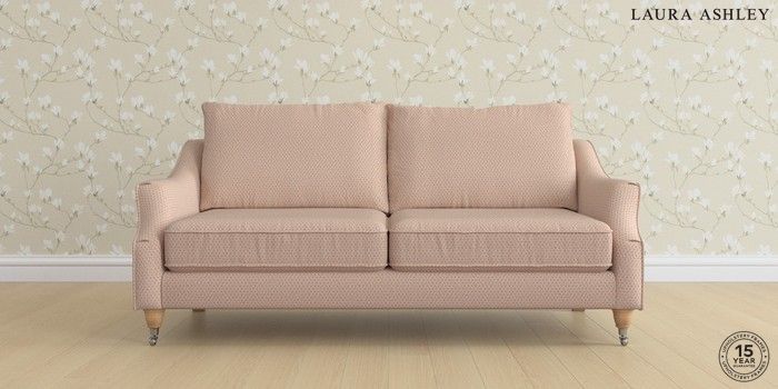 6.12.1 Buy Beverley by Laura Ashley 3 Seater Sofa Melbreak Geo Chalk Pink Low Chrome Castor - Light Oak from the Next UK online shop Click here to use our accessible website