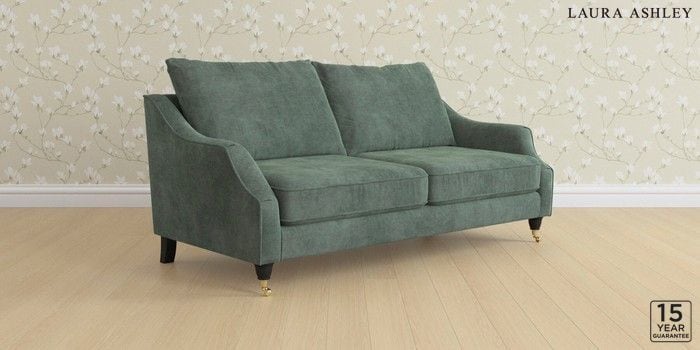 6.12.1 Buy Beverley by Laura Ashley 3 Seater Sofa Nantmor Fern Green Low Brass Castor - Black from the Next UK online shop Click here to use our accessible website