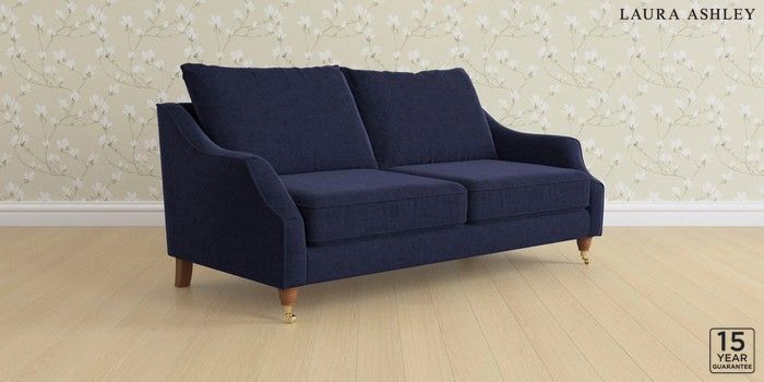 6.12.1 Buy Beverley by Laura Ashley 3 Seater Sofa Nantmor Midnight Navy Low Brass Castor - Teak from the Next UK online shop Click here to use our accessible website