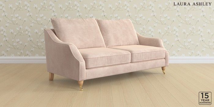 7.3.1 Buy Beverley by Laura Ashley 3 Seater Sofa Orla Chalk Pink Low Brass Castor - Light Oak from the Next UK online shop Click here to use our accessible website