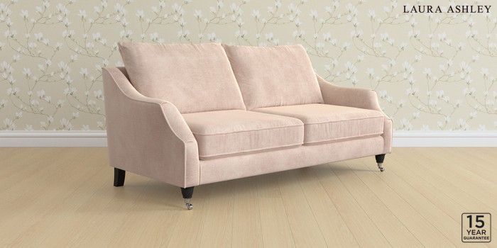 7.3.1 Buy Beverley by Laura Ashley 3 Seater Sofa Orla Chalk Pink Low Chrome Castor - Black from the Next UK online shop Click here to use our accessible website